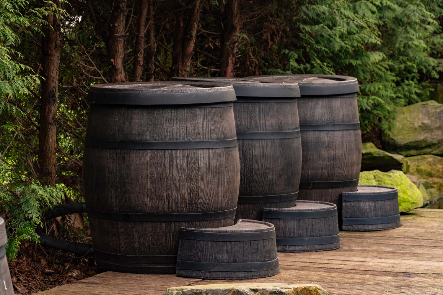 - Duurzame materialen: slagvast, onderhoudsarm polyethyleen met rustieke wood-look buitenzijde.