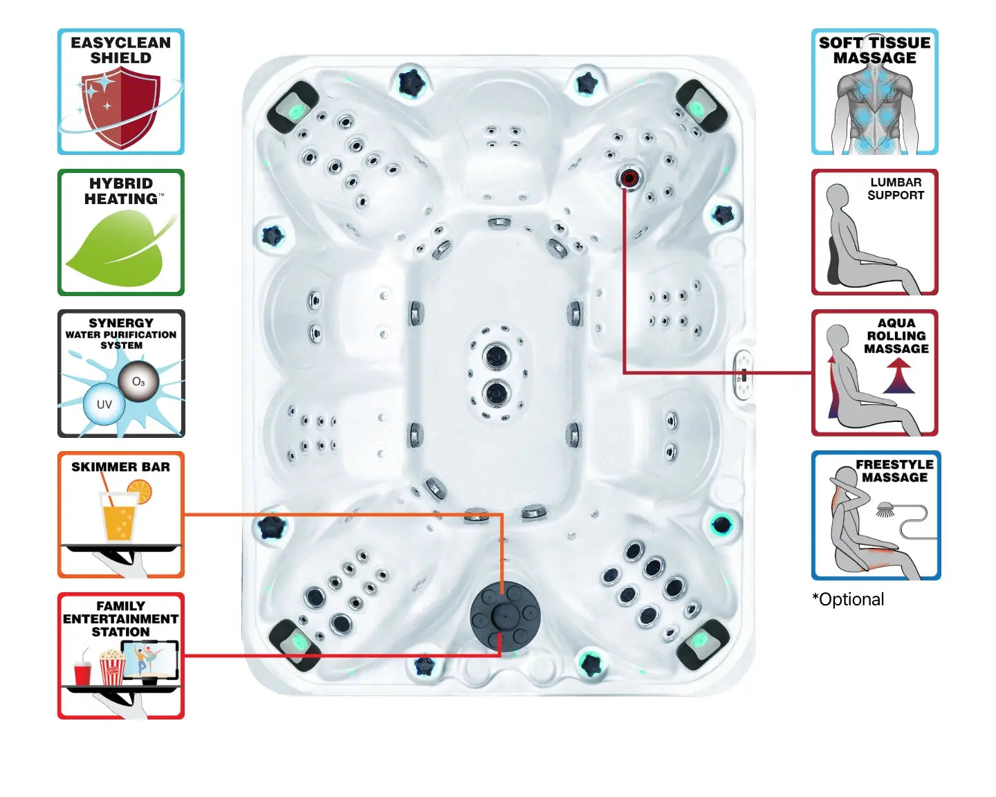 - Hydrotherapie op maat: krachtige jets zorgen voor een diepe, gerichte massage die spieren ontspant en herstel bevordert.