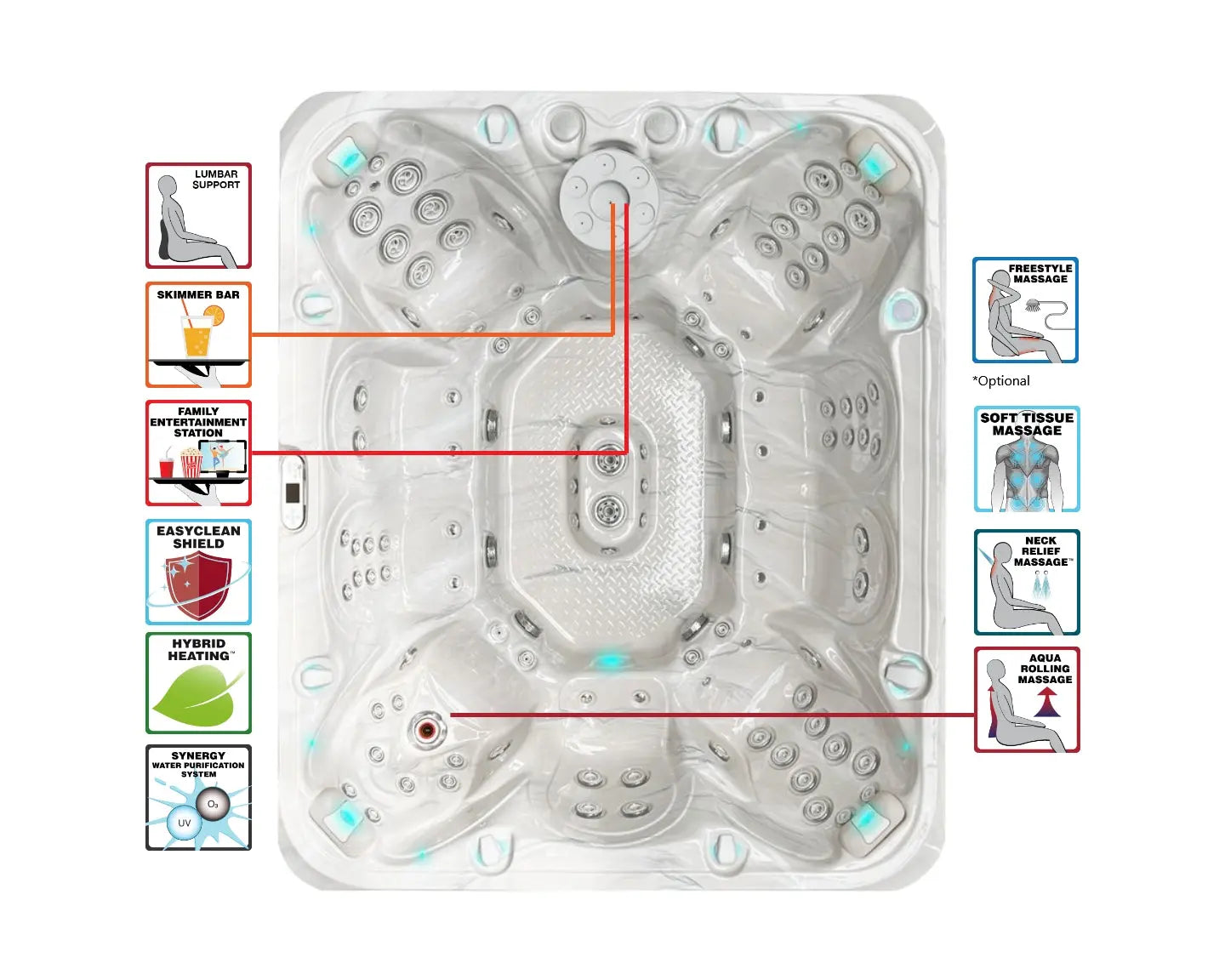 - Hydrotherapie op maat: krachtige jets zorgen voor een diepe, gerichte massage die spieren ontspant en herstel bevordert.