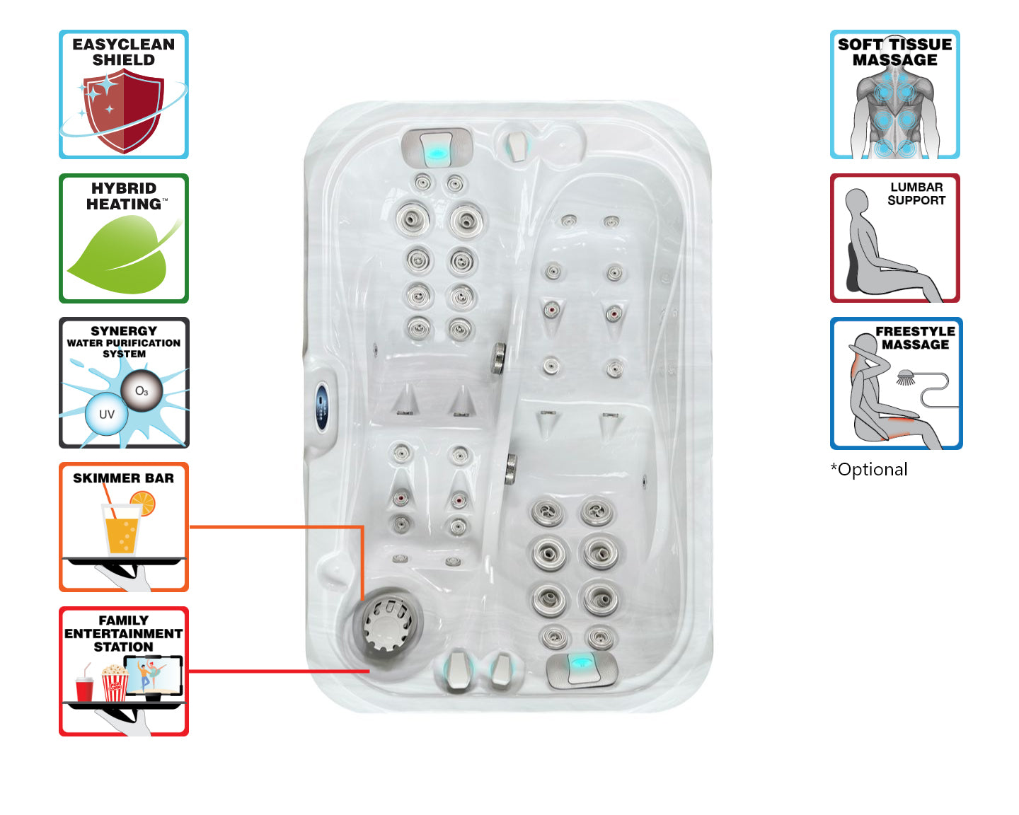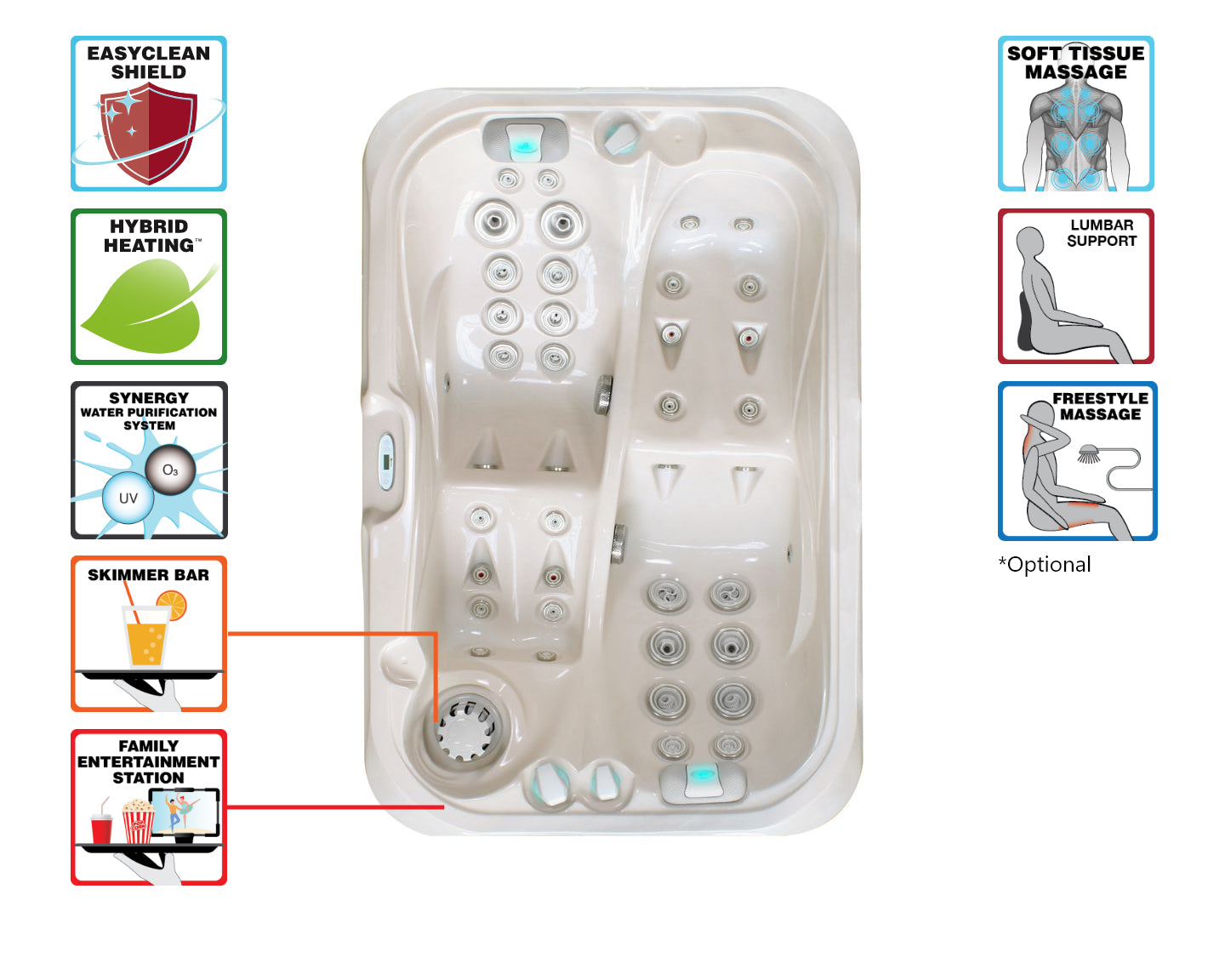 - Duurzame keuze: gebouwd voor jarenlang wellness-plezier, zowel als spa buiten als binnen.