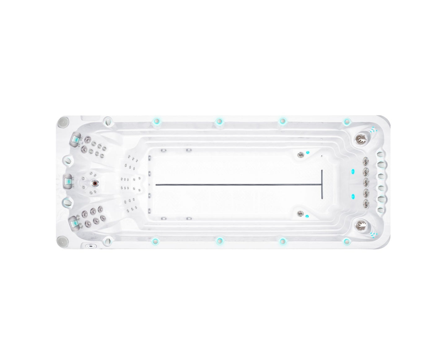 - 5 krachtige swimjets: instelbare snelheid tot 7 mph – van rustig duurzwemmen tot intensieve intervaltraining.