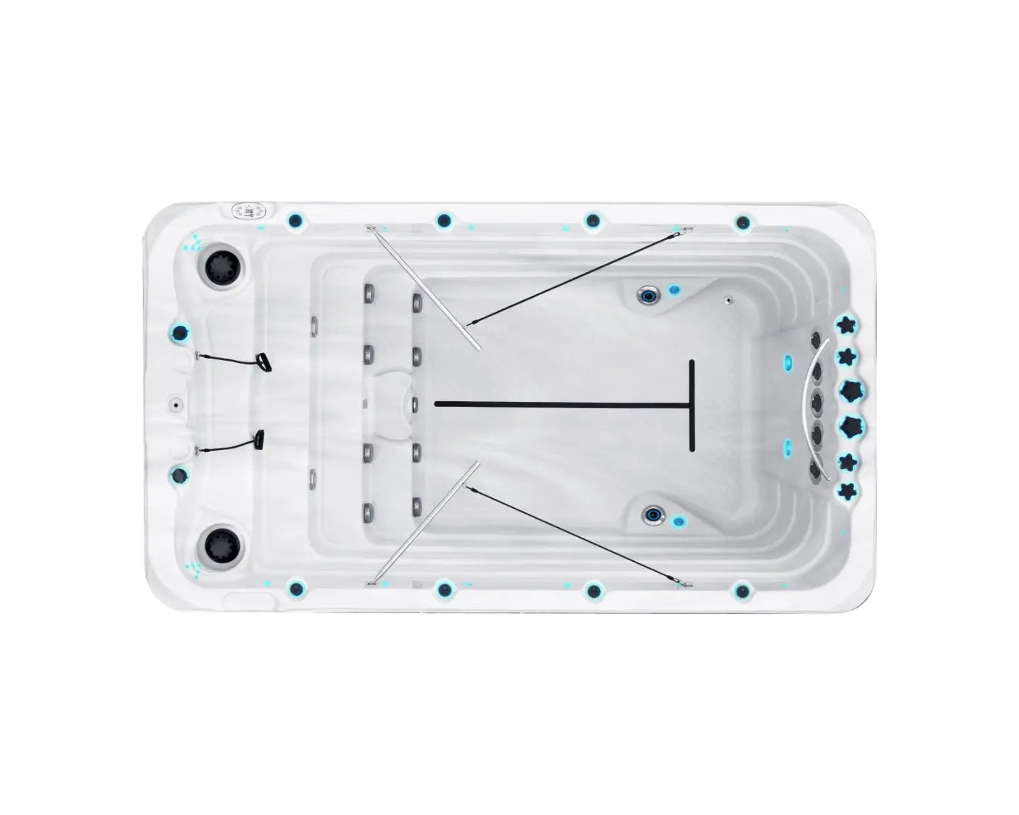 - Krachtige zwemjets: 4 Turbo Swim Jets en 2 Floor Swim Jets zorgen voor een stabiele, instelbare stroom – perfect voor techniek of intervaltraining.