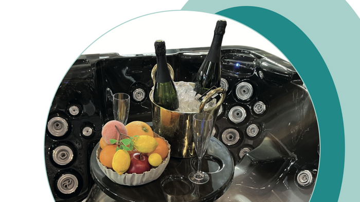 Spa Retreat Bar Onze innovatieve bartafel verrijkt je spa-ervaring. Gemaakt van hoogwaardige, waterbestendige materialen en naadloos geïntegreerd met je spa. Biedt ruimte voor zes glazen, perfect voor gezelschap of een rustige avond.